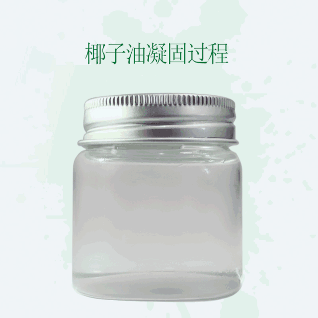 常温下凝固过程有可能会出现下图中的情况,也完全无需担心,这是温度原因,待温度再低一点的时候,椰子油也会完全凝固成雪白的固体状,这都是椰子油特有的正常物理现象,不会影响椰子油的品质。